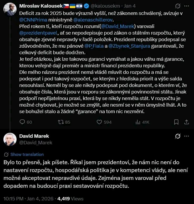 Premiér Fiala a ministr financí Stanjura vědomě předkládali lživé a prezident Pavel je vědomě podepsal. Gratulujeme.