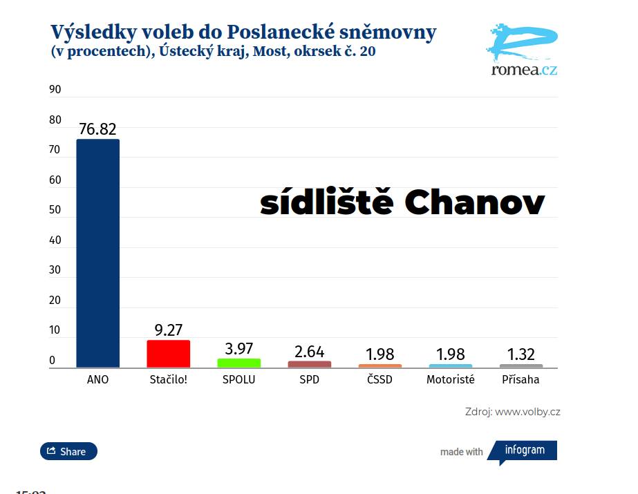 Až na tom bude polovina ČR ekonomicky srovnatelně jako dnes obyvatelé Chánova, tak pokud v té době budou ještě povoleny volby, tak ty výsledky budou dost podobné. Stačí počkat pár let na všechna ta dobrodiní, co nám chystá EU, případně členství v NATO.