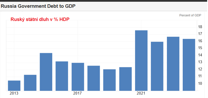 Státní dluh Ruska v roce 2024 činil 16,4% HDP.