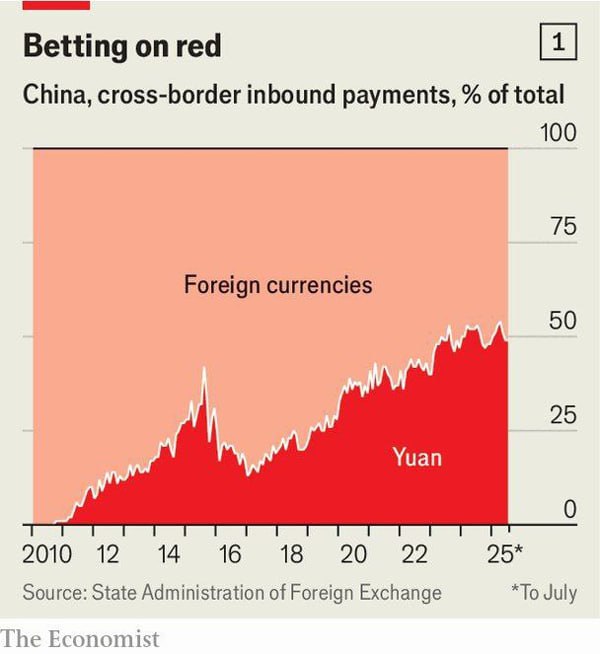 Čína rychle snižuje svou závislost na dolaru: podíl jüanu na zahraničním obchodu Číny překročil 30 % a více než polovina přeshraničních příjmů Pekingu se již vypořádává v národní měně jüanu (renminbi). A růst dále pokračuje.